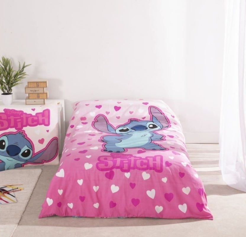 Giv børneværelset et farverigt og sødt udtryk med dette officielle Disney Stitch sengetøj. Det lyserøde sæt er prydet med et charmerende Stitch-motiv, der bringer Disney-magi ind i soveværelset.