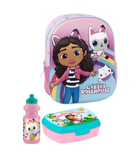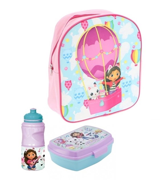 Supersejt sæt rygsæk og madkasse, drikkedunk med Gabby motiv