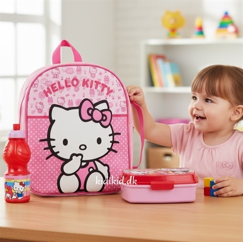 Hello Kitty børnehavestart sæt , rygsæk 3D m. madkasse og drikkedunk