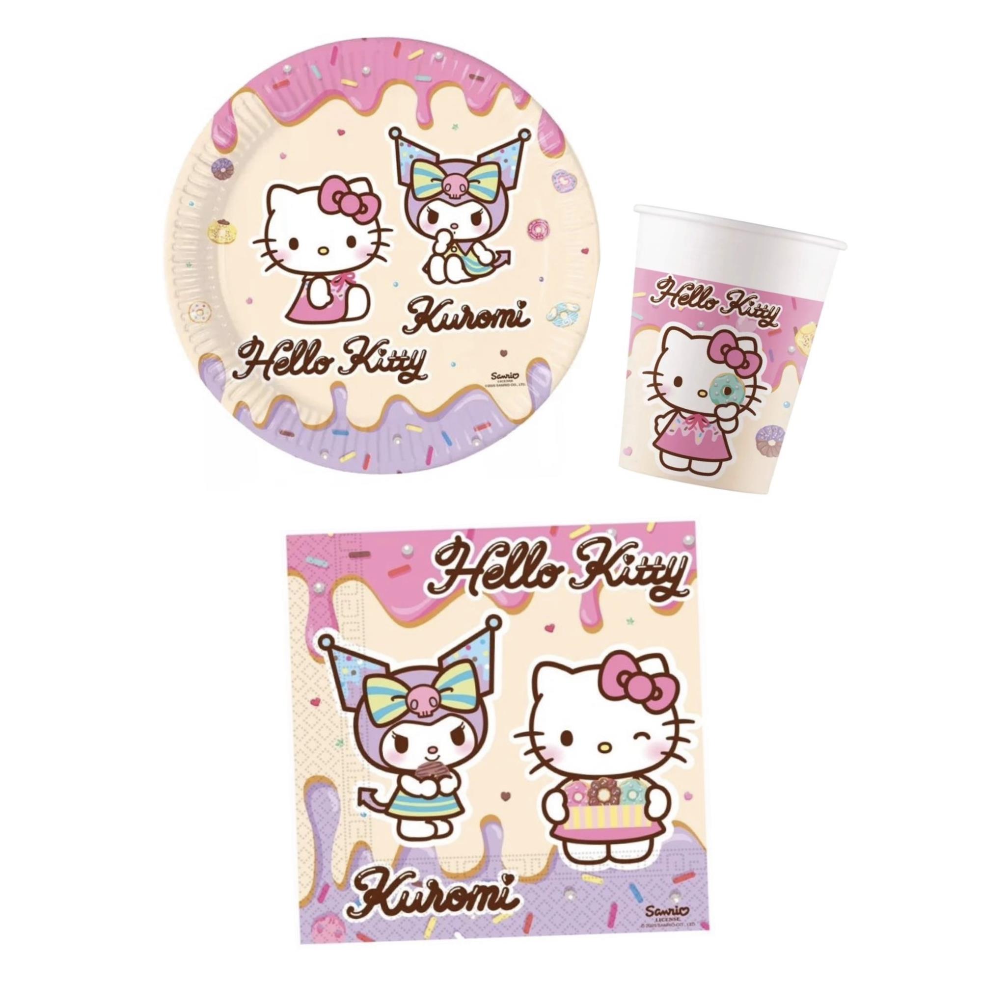 Gør børnefesten ekstra magisk med denne officielle Hello Kitty tema fødselsdagspakke. Sættet indeholder service og pynt til 8 børn med det søde Hello Kitty Kuromi motiv. Perfekt til en uforglemmelig børnefødselsdag med masser af farver og sjov.