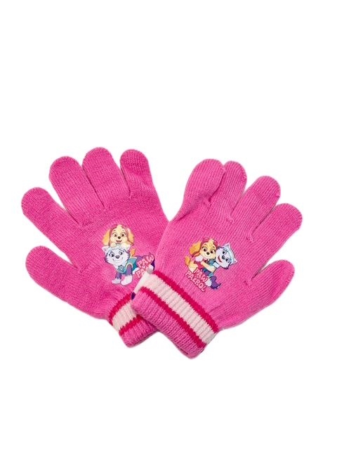 Flot sæt strikhue og vanter i lyserød med de søde Skye og Everest motiv